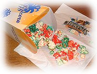 ★クリスマスポップコーン おとぼけママが、とにかくぶっ飛んだのはコレ。赤と緑はまさにクリスマスカラーだよね。(レッドホットシナモン&ブルーラズベリーということです。) レストランガイドの写真でみて、絶対食べるぞーとは思っていたのです。カリフォルニア・コンフェクショナリーという、お菓子のおみやげ専門のショップのまえに、特設ワゴンを出して売っていました。(レストランガイドで示されている位置のはす向かいでした。)さて、「コレ下さい!」と言うと、クルーのおねーさん、 「ハイ。(ニッコリ)ただ、こちらちょっと辛いんですけどよろしいですか?」 ええー?!からいのォー???ちょっと不安になったけど、あとには引けないよねー。(だいたい、こんな事であとに引く性格じゃあないし。)と言うわけで、ゲットしました。食べた感想?確かにちょっと辛いです。基本的にはあまいんですヨ。まあ、コレは、好きずきだろうなー。ちなみに、私の母におみやげにあげたら、おいしいおいしいと食べていました。レッツ・トライ!食べた人はぜひ感想を聞かせてね。そうそう、スヌーピーのクリスマス限定スーベニアバケツに入った物も買えます。 |